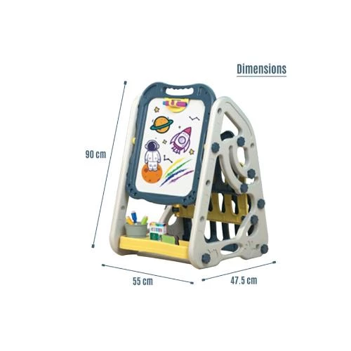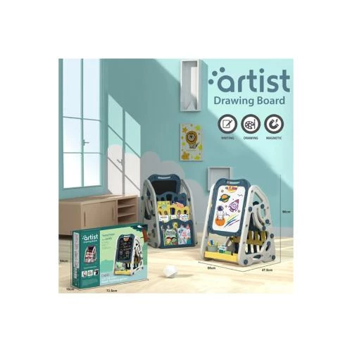 Encourage your child's creativity and learning with the Little Story Double-Sided Magnetic Drawing & Learning Board with Bookshelf by SAMBOX in a vibrant blue color. This multifunctional board features a magnetic whiteboard on one side and a classic blackboard on the other, allowing children to draw, write, and explore their imagination in fun and interactive ways. With a wide assortment of creative tools-including chalks, water pens, magnets, eraser, and pen holder-this set promotes artistic expression, coordination, and fine motor skills. The built-in bookshelf at the bottom is ideal for storing books and materials, keeping the play area tidy. Made from durable PP material, the board is sturdy and safe for children aged 3 years and above, making it the perfect gift for birthdays or educational playtime at home.