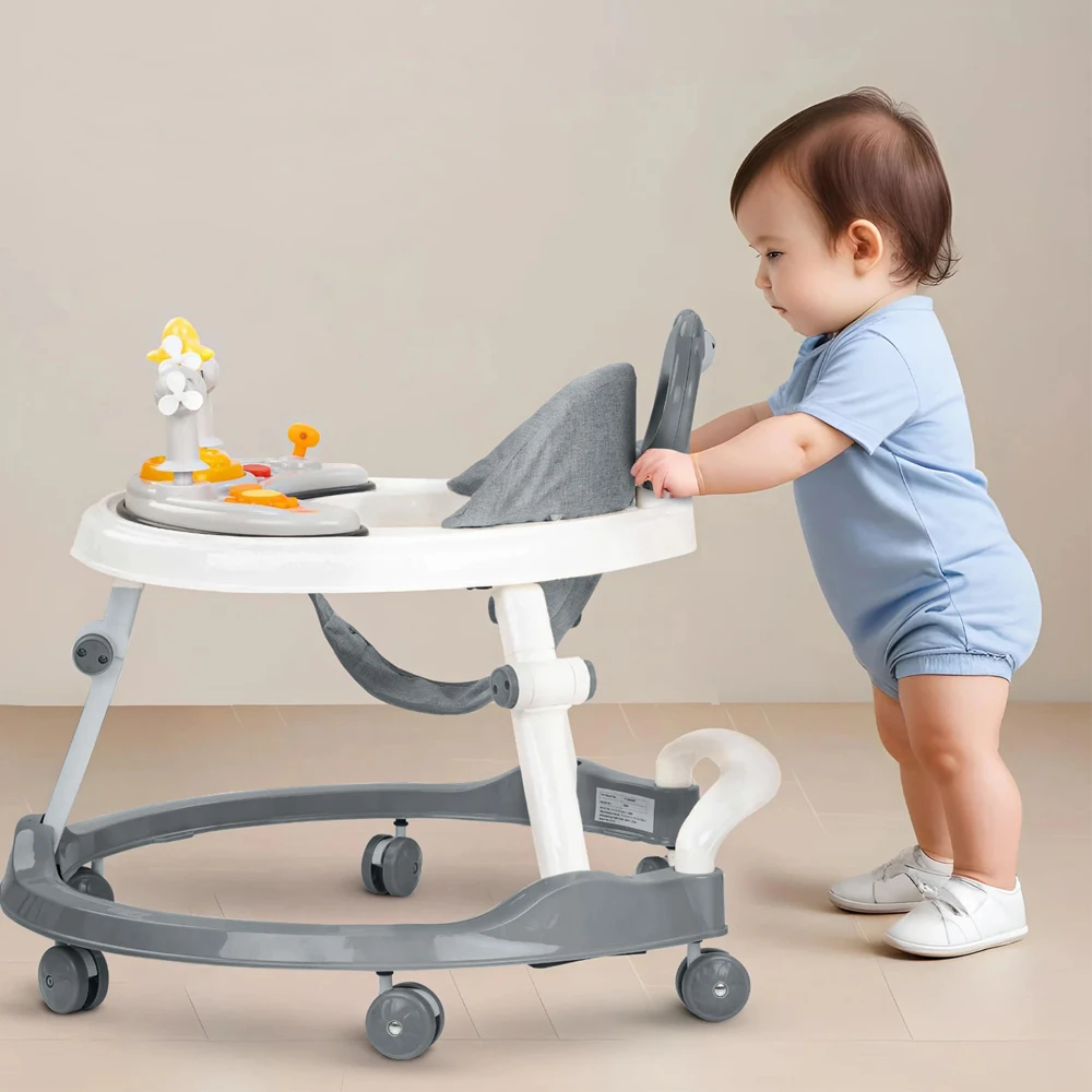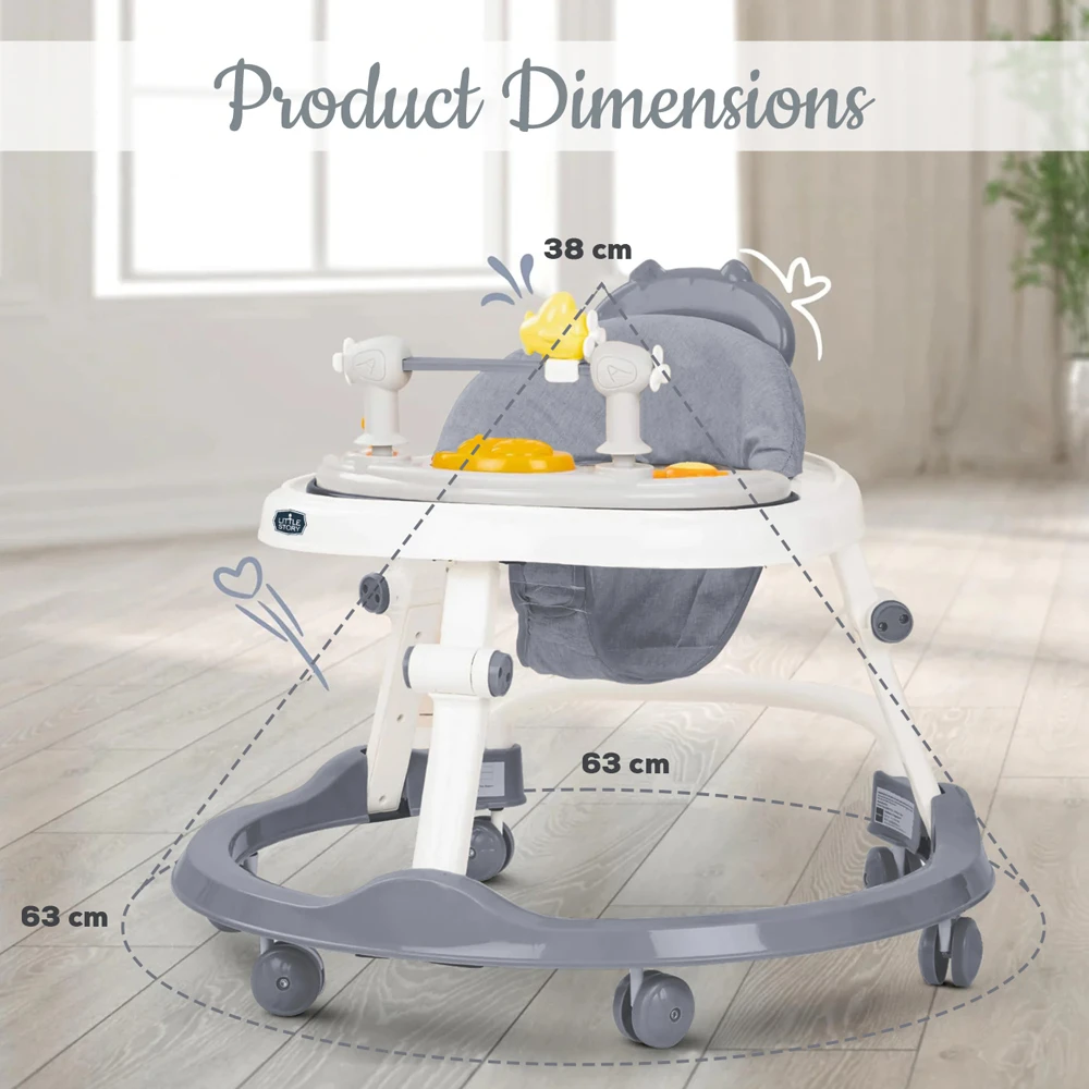 Encourage independent walking with the Little Story Foldable Baby Walker, designed to blend safety, fun, and convenience. This walker features a compact, lightweight frame that's easy to fold and store, ideal for daily use or travel. It comes with a soft, cushioned seat and a toy tray loaded with colorful, interactive elements that stimulate sensory development and keep babies happily occupied. With a stable base and smooth-rolling wheels, this walker is a reliable partner during those early steps.