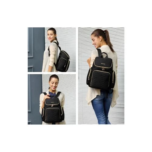 The Little Story Georgia Diaper Bag by SAMBOX combines style, comfort, and functionality with its quilted design, smooth golden zippers, and cushioned adjustable shoulder straps with breathable padding for all-day comfort. Crafted from 100% polyester, this black diaper bag offers a spacious interior with a wide opening and a total of 10 pockets-including 7 internal and 4 external pockets-for effortless organization of your baby essentials. It features a built-in USB port for phone charging on the go, insulated tin-foiled bottle chambers that keep bottles upright and maintain temperature, and a spill-proof front bottle pocket perfect for travel. The luxurious oversized machine-washable changing pad (56 x 36.5 cm) ensures convenience, while stroller hooks and D-loops allow easy attachment to your stroller. Designed for both moms and dads, the bag includes metal feet to protect it from dirt when placed on the ground, a tech pocket for laptops or tablets up to 14.8 inches, and a discrete back pocket for quick access to valuables-making it the perfect blend of practicality and fashion for parents on the move.