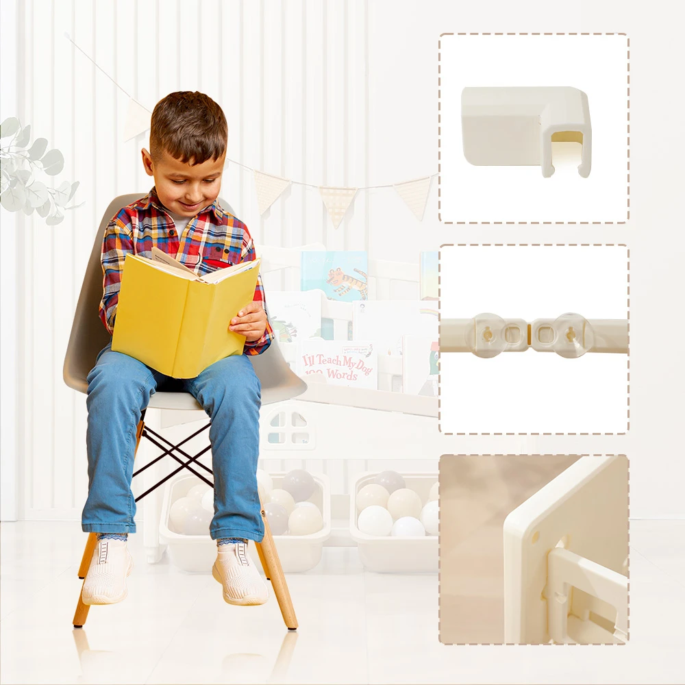Built from sturdy, child-safe materials, this unit is durable and easy to clean. Its crisp white finish blends with any interior style, making it ideal for bedrooms, playrooms, or study areas. This bookshelf encourages organization while creating a tidy and inviting learning space.
