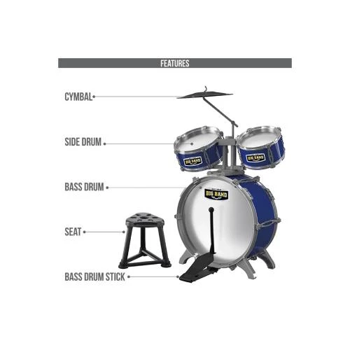 Little Story Kids Drum Set Musical Instrument with Stool - Blue