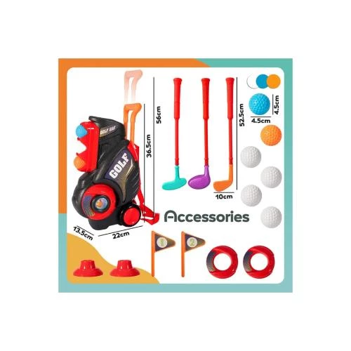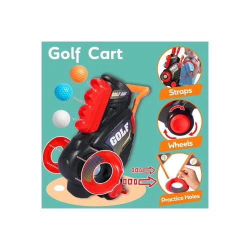 Introduce your little one to the joy of golf with the Little Story Kids Golf Kit with Mobility Cart -the perfect starter set for young golf enthusiasts. This colorful and lightweight golf playset includes a pull-along golf cart with 2 easy-rolling wheels, 3 colored golf clubs (wood, iron, and putter), 6 golf balls, 2 practice holes, 2 bases, and 2 flags. Thoughtfully designed for kids aged 3 and up, the kit supports motor skill development, hand-eye coordination, and cognitive thinking, all while promoting fun-filled outdoor play. The cart features a retractable handle and shoulder strap for easy carrying, and all accessories store neatly inside, making it portable and convenient for indoor or outdoor use-in the garden, backyard, or even at the beach. With realistic details and a mini golf course setup, it's a fun and engaging way to strengthen the parent-child bond as families enjoy golf time together. Durable with smooth edges, this golf kit is also a fantastic gift option for birthdays, holidays, or any special occasion.