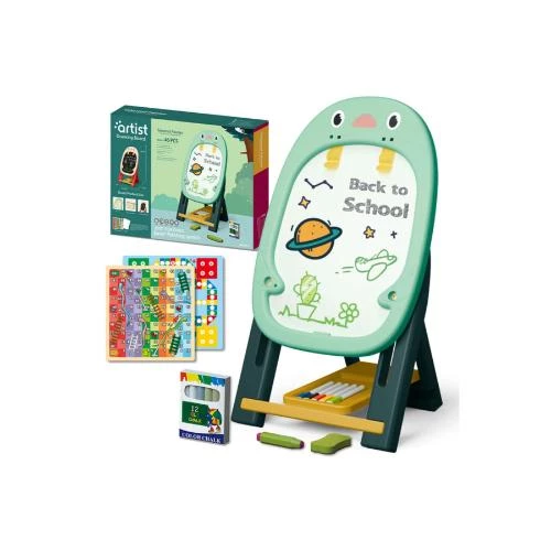 Ignite creativity and inspire imaginative learning with the Little Story Artist Penguin Double-Sided Magnetic Drawing Board (46 Pcs) -Green by SAMBOX. Designed in an adorable penguin shape with smooth, rounded edges, this foldable and adjustable easel features both a blackboard and a whiteboard, making it a versatile tool for drawing, writing, and educational play. Perfect for kids aged 3 and above, the board comes fully loaded with fun: a color chalk set, 6 color pens, 6 magnets, 5 plain papers, a board eraser, magnetic buttons for paper holding, and spirograph stencils for artistic doodling. To double the excitement, this set also includes two board games (with dice and pawns), transforming the learning tool into a playful gaming hub. Simple to assemble and easy to store, this all-in-one art and learning station helps build fine motor skills, boost concentration, and promote creative expression. A wonderful gift for birthdays, holidays, and educational milestones!