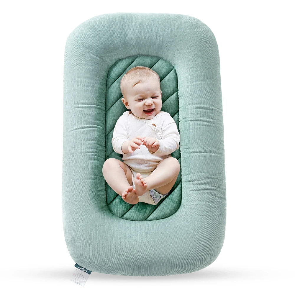 Little Story Portable Baby Lounger Sleeping Pod - Green | Ergonomic Travel Nest for Newborns