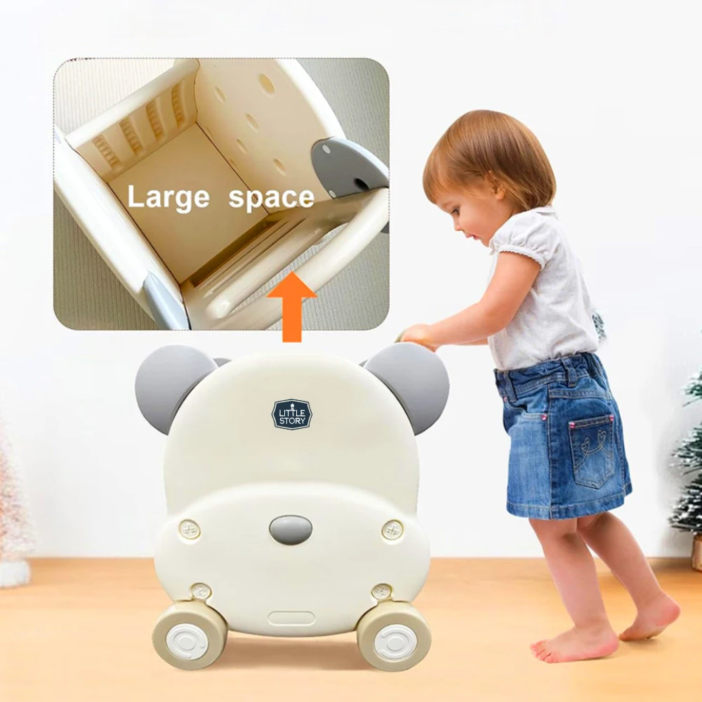 kids storage cart, toy shopping cart, bear design storage, beige kids cart, little story cart, portable toy storage, pretend play shopping cart, kids organizer cart, rolling storage cart, child safe cart, durable toy storage, stylish kids organizer, functional play cart, indoor storage cart, toy tidiness cart, lightweight kids cart, playful storage solution, cute bear storage, mobility cart, multipurpose kids cart