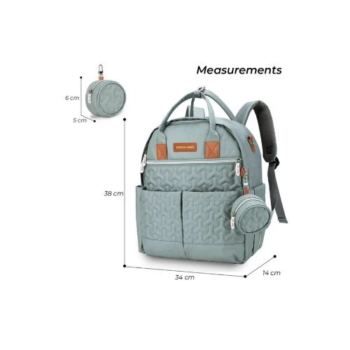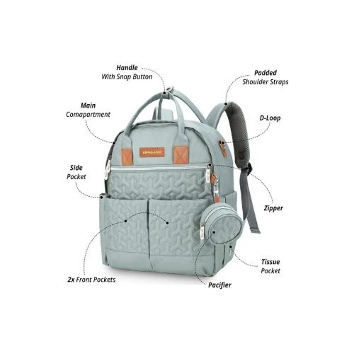 Little Story Quilted Diaper Backpack with Pacifier Bag & Stroller Hooks -Wedgewood Green