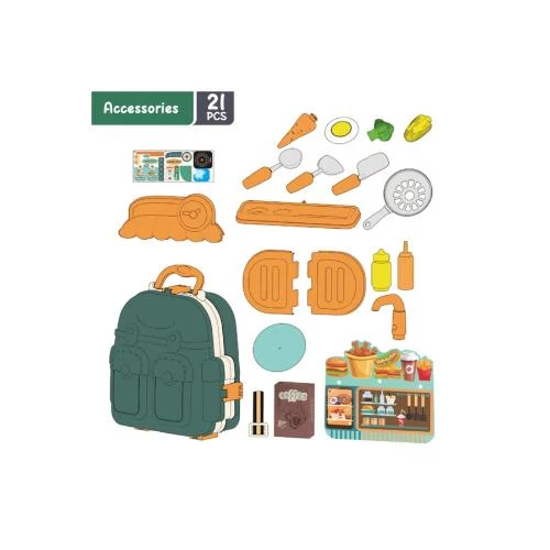 Little Story Role Play Chef/Kitchen/Restaurant Toy Set School Bag (21 Pcs) -Green, 3-in-1 Mode