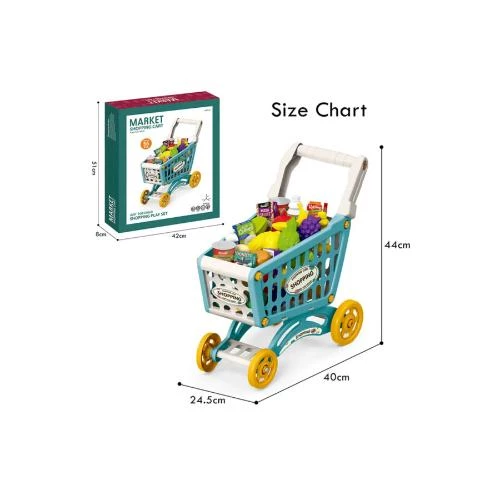 role play shopping cart toy, kids supermarket play set, pretend play toy set, shopping trolley toy for toddlers, kids grocery cart toy, educational toy set for kids, role play set for preschoolers, toy market cart with accessories, supermarket playset green, pretend shopping experience toy