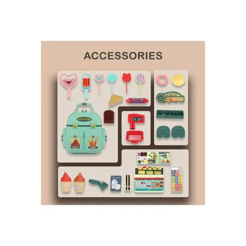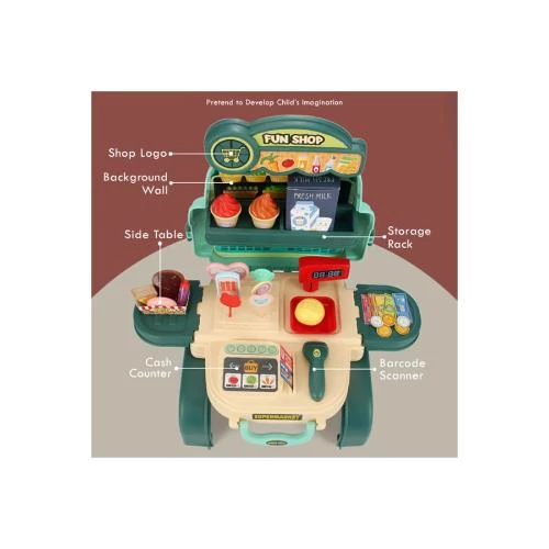 Little Story Role Play Shopkeeper/Supermarket Toy Set School Bag (36 Pcs) -Green, 3-in-1 Mode