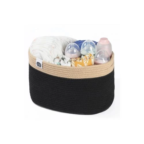 laundry caddy basket, cotton rope storage basket, black rope basket, multipurpose storage bin, baby nursery organizer, foldable rope basket, eco-friendly laundry organizer, home storage basket, handcrafted rope basket, vegan handle storage bin, Little Story caddy, soft laundry hamper