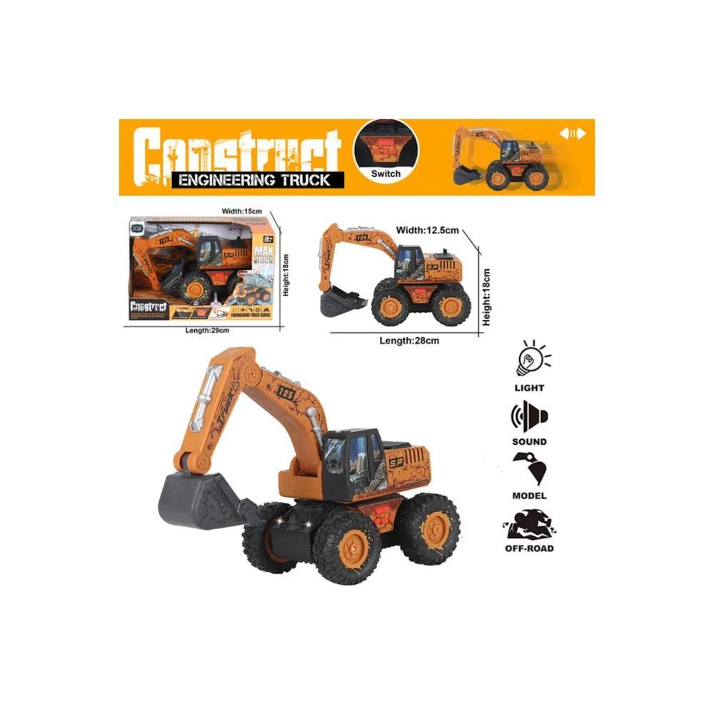 little story excavator toy, inertial engineering vehicle, construction toy for kids, toy excavator with light and sound, kids engineering vehicle, simulation digger toy, pull back excavator, yellow toy truck, kids construction truck, toy vehicle with batteries
