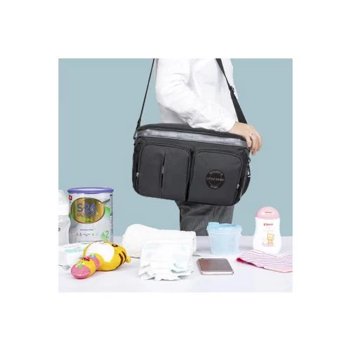 Little Story Stroller Organizer Travel Bag -Convertible Shoulder Bag with Large Capacity & Multiple Pockets -Black