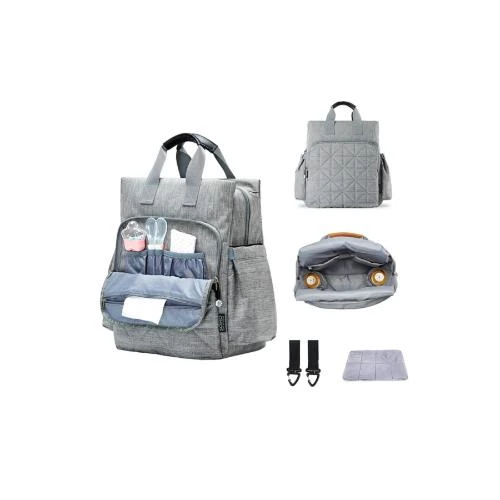 diaper backpack, maternity messenger bag, insulated bottle pockets, baby diaper bag, stroller hooks included, changing mat bag, waterproof diaper bag, baby organizer backpack, little story diaper bag, grey diaper backpack