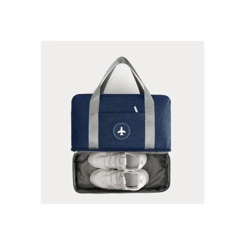 blue travel duffel bag, waterproof gym bag, multipurpose travel bag, blue weekend bag, gym bag with shoe compartment, travel organizer for men and women, wet dry compartments bag, cationic fabric travel bag, stylish duffel for sports, little story travel bag