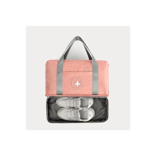 pink travel duffel bag, waterproof gym bag, multipurpose travel bag, weekender bag for women, gym bag with shoe compartment, stylish pink travel organizer, wet dry compartment bag, cationic fabric duffle, little story travel bag, sports and gym tote for ladies