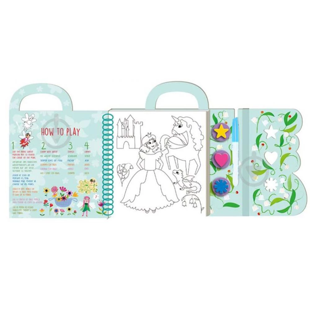 Unleash creativity with the Magic Water Painting - Fairy Tales book, featuring 8 pages of fun water painting activities! This interactive book includes a refillable water pen, reusable stencil, and 3 fun stamps for endless entertainment. Simply fill the pen with water and draw on the pages to reveal vibrant colors, and when dry, the colors disappear, allowing kids to start over. Perfect for 3-5 years old, this mess-free activity book encourages imaginative play, fine motor skills development, and is easy to carry with its convenient handle. Ideal for on-the-go fun without the mess!