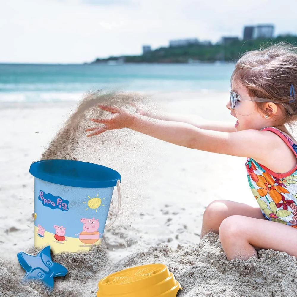 Make beach days extra fun with the Mondo Bio 17cm Peppa Pig Bucket, the perfect summer toy for little Peppa Pig fans! Designed with bright and colorful Peppa Pig graphics, this 17cm plastic beach bucket is great for sandcastle building, outdoor play, or even the playground. Made from high-quality, durable plastic, it ensures long-lasting fun. Lightweight and easy to carry, this bucket is an ideal companion for beach trips, sandbox adventures, and creative outdoor play. Suitable for kids aged 3 years and above.