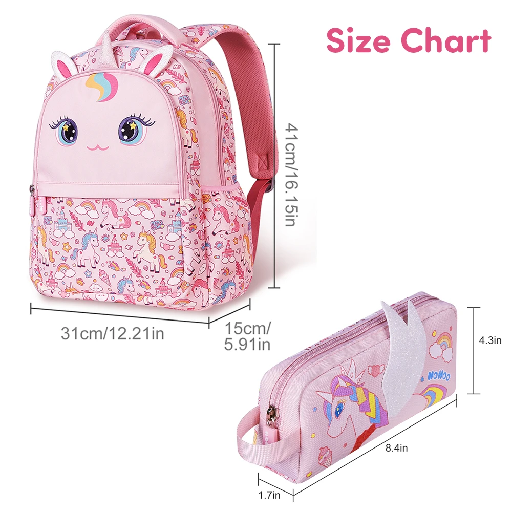 school bag combo, unicorn design, pink backpack set, 16 inch backpack, matching pencil case, water resistant, padded straps, cushioned back panel, school supplies set, organized storage, nohoo unicorn bag, zipper closure, lightweight combo, novelty school set, stylish kids backpack, durable material, easy to clean, everyday school gear, ergonomic backpack, coordinated pencil pouch