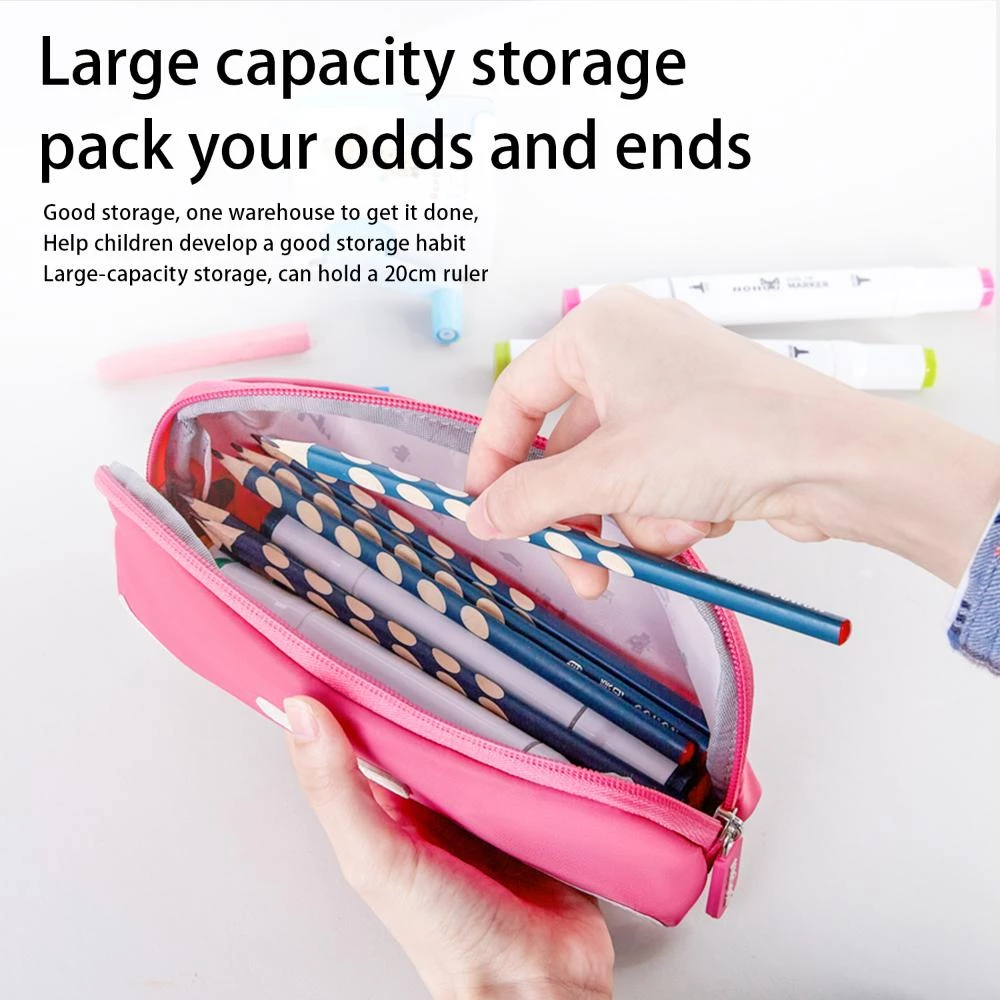 Keep your childs stationery organized in style with the Nohoo Pencil Bag in Rose Red by SAMBOX. Made with premium fabric and synthetic vegan leather, this durable pencil pouch offers high-quality finishes and a cute design kids will love. Its wide storage pocket has a sturdy zipper to keep pens, pencils, and other supplies secure and easy to access. With a smooth-sliding zipper and firm-grip pullers, its hassle-free for kids to use daily. Its compact design slips easily into any backpack, while the water-resistant and anti-dirt material stays fresh with just a quick wipe. This multi-functional bag also works perfectly as a cosmetic pouch for girls or a handy organizer for school, office, or home. A lovely gift idea for back-to-school!