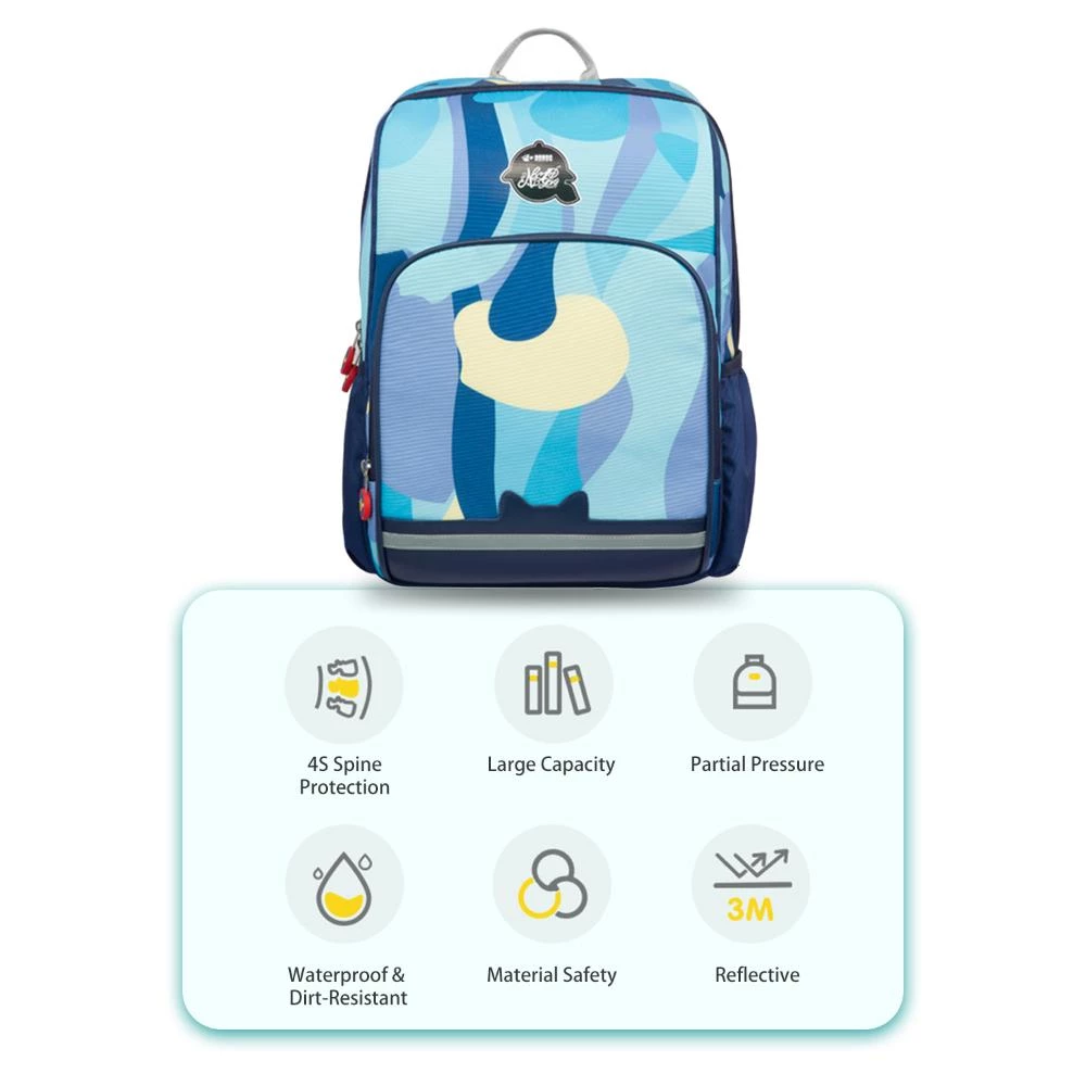 Nohoo Symphony School Bag for 0-8 Grade Students - Symphony Blue - Ergonomic Spine Protection Backpack by SAMBOX