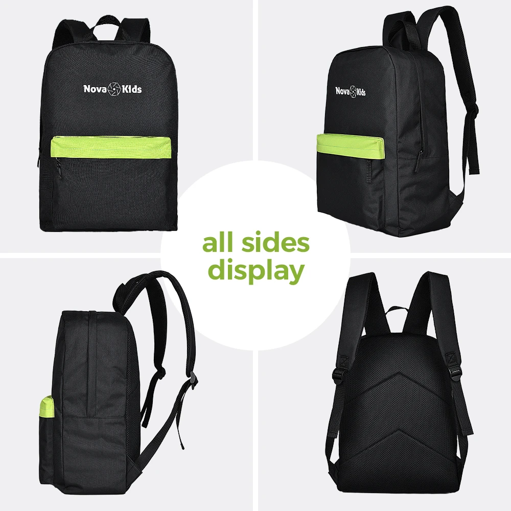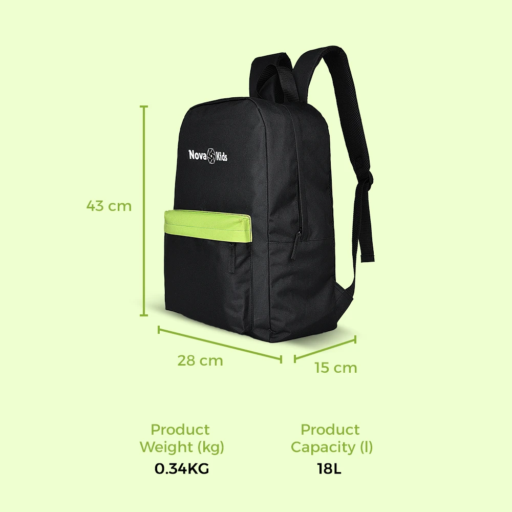 black school bag, 17 inch backpack, 18l capacity bag, nova backpack, classic kids backpack, adjustable straps, daily school gear, side bottle holder, secure zip closure, padded back panel, kids book bag, ergonomic design, multi pocket backpack, simple school bag, water resistant fabric, lightweight kids bag, spacious school bag, practical black backpack, easy clean bag, durable school gear