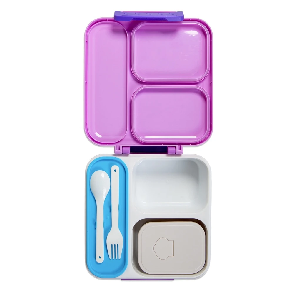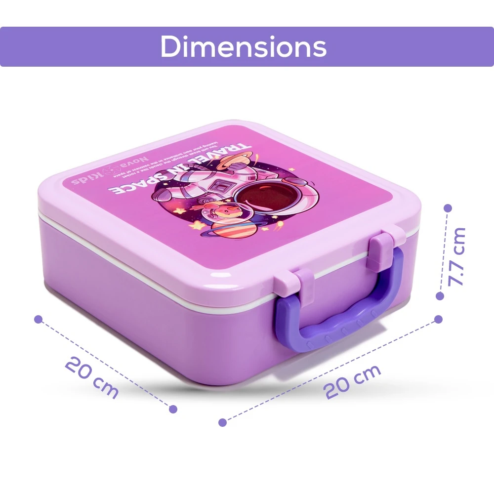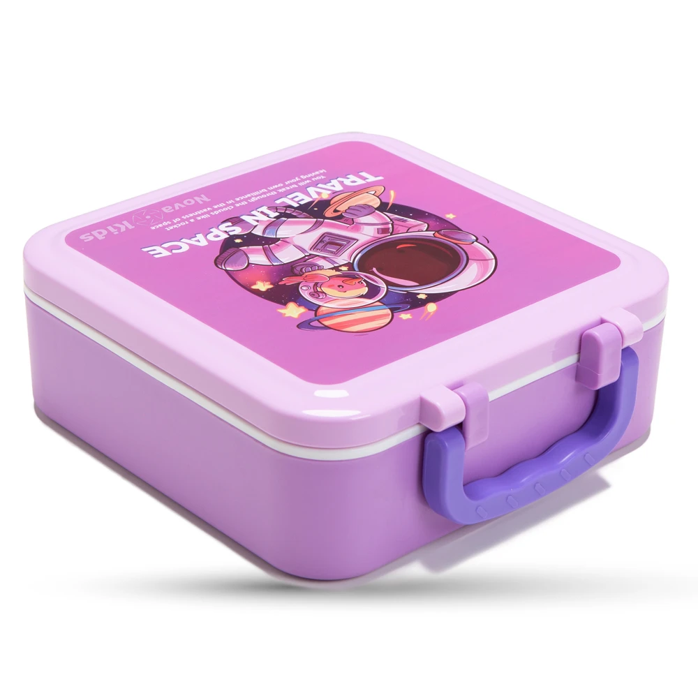 Nova Kids 3-Compartment Bento Lunch Box with Spoon & Fork Set and Stainless Steel Gravy Box - Astronaut Purple