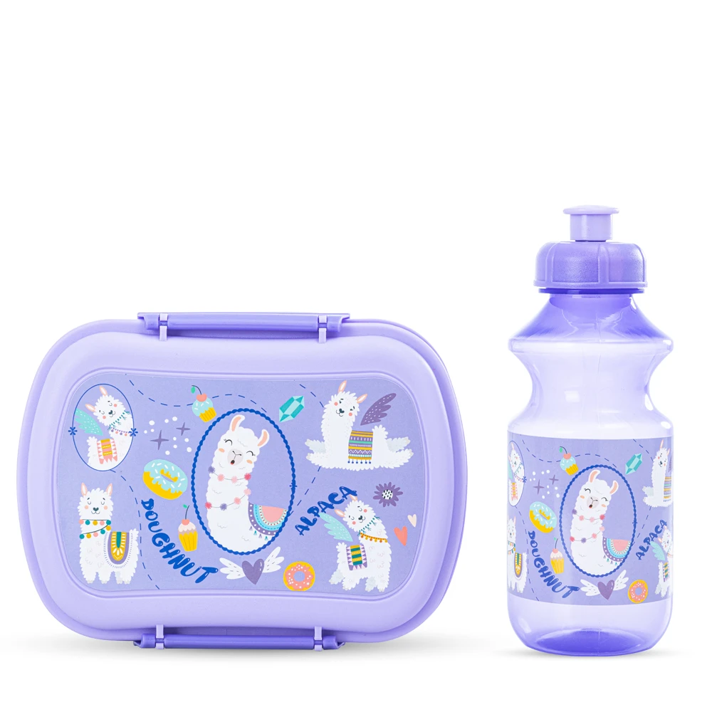 Nova Kids Lunch Bag Combo with Lunch Box & Water Bottle - Lama Purple