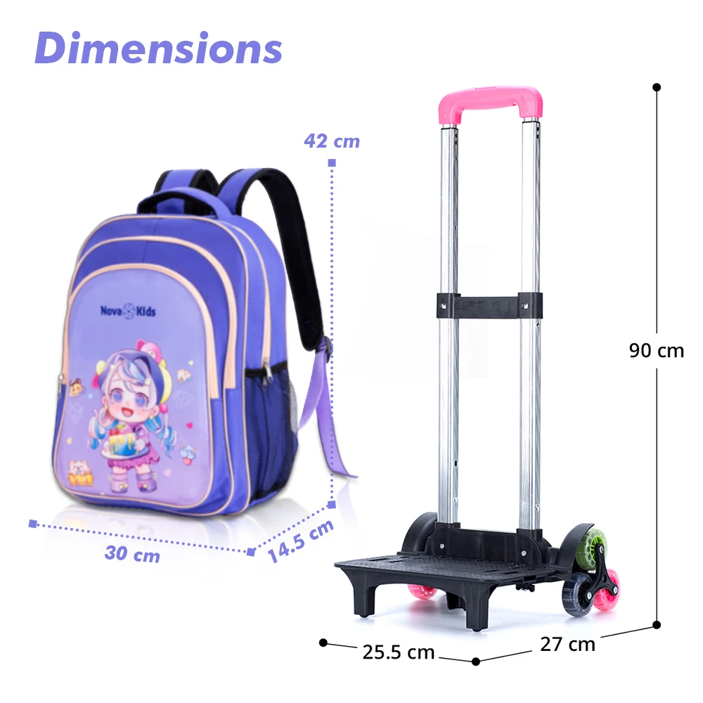 Nova Kids Trolley School Bag Set of 5 - 16 Inch - Purple