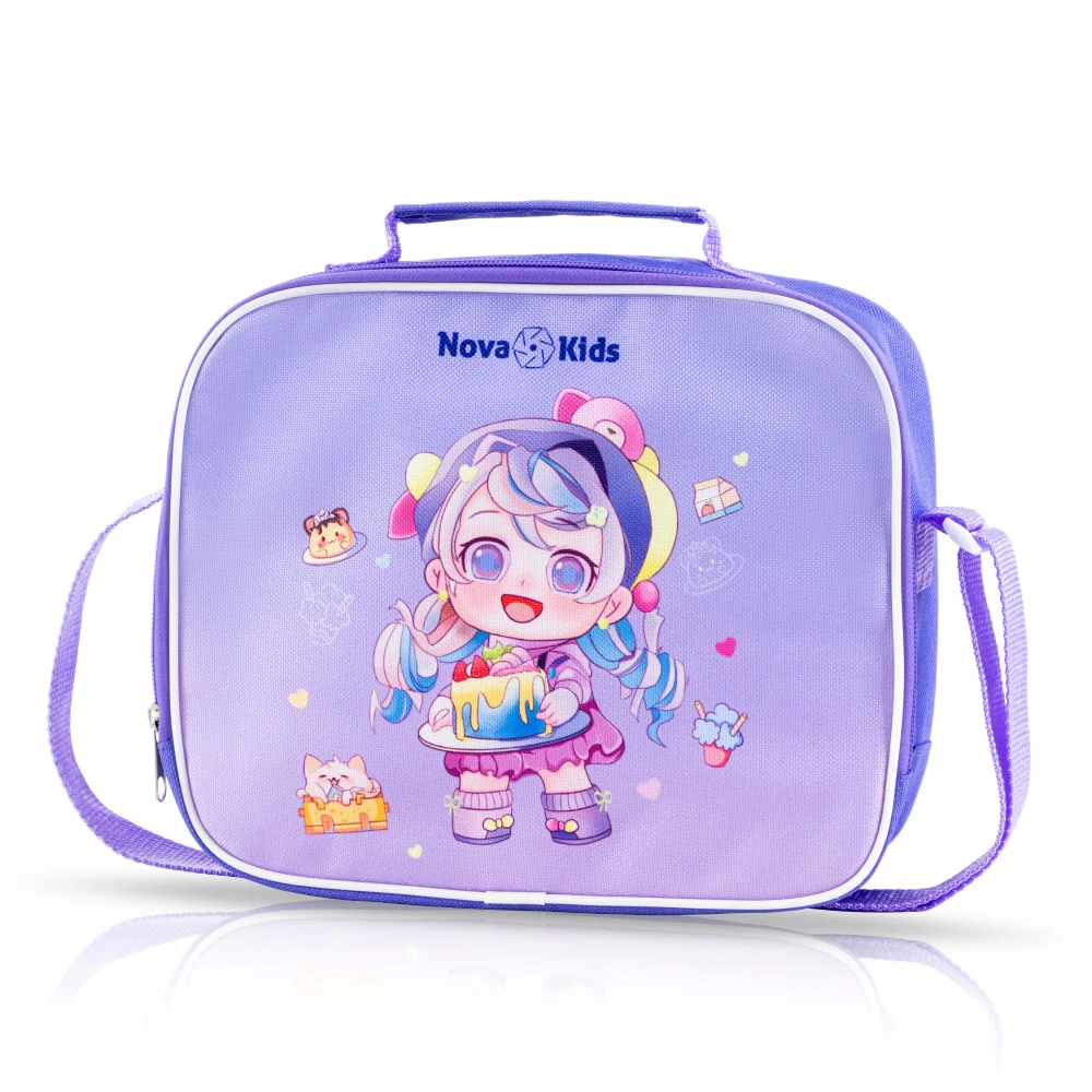 trolley school bag set, purple school bag, 16 inch school set, nova school trolley, rolling school bag, multi compartment school bag, durable school luggage, smooth wheels trolley, adjustable trolley handle, lunch bag set, matching backpack, pencil case set, kids school storage, stylish school set, organized school gear, practical school bag, school accessories pack, easy transport school bag, coordinated school set, backpack trolley combo