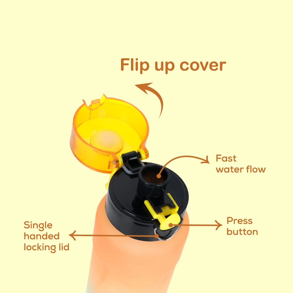 nova kids water bottle, orange bottle, 1000ml bottle, food safe hydration bottle, bpa free, phthalate free, leak proof lid, silicone sealed bottle, one touch button lid, dust cap bottle, reusable water bottle, school water bottle, travel bottle, lightweight design, durable bottle, colorful bottle, hydration gear, easy clean bottle, vibrant bottle, everyday hydration