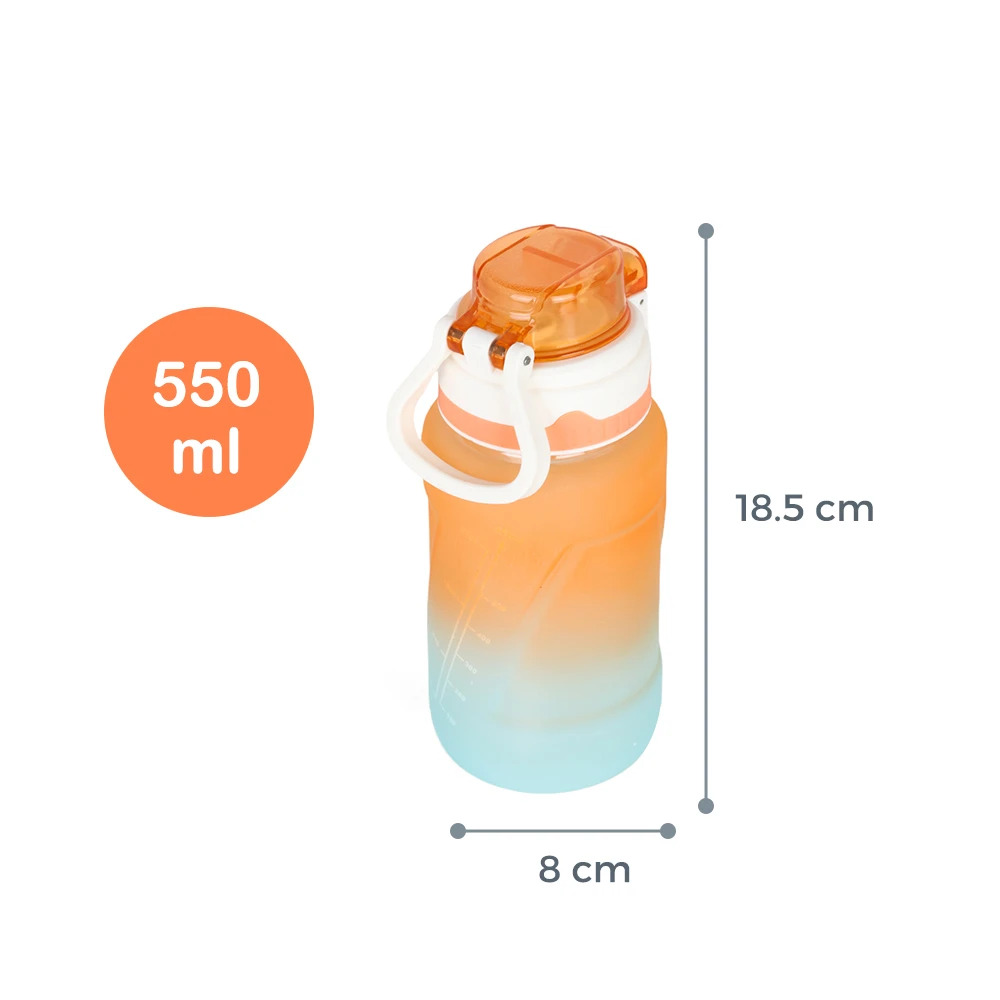 orange water bottle, 550ml bottle, kids straw bottle, easy sip design, leakproof lid, school water bottle, reusable plastic bottle, flip straw cap, bpa free material, lightweight kids bottle, compact drinkware, durable kids hydration, bright color bottle, travel-friendly bottle, safe water bottle, daily use bottle, fun design, kids accessory, nova water bottle