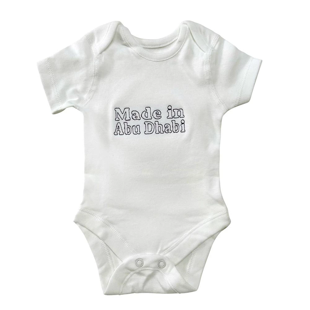 Celebrate tiny beginnings with the Petite Lamb "Made in Dubai" short sleeve bodysuit - a charming blend of comfort, practicality, and personality. Made from all-organic cotton, this soft white bodysuit is gentle on delicate skin and perfect for everyday wear. At the heart of the piece is an embroidered "Made in Dubai" motif, adding a fun and quirky touch that makes it ideal for gifting or capturing memorable baby milestones.