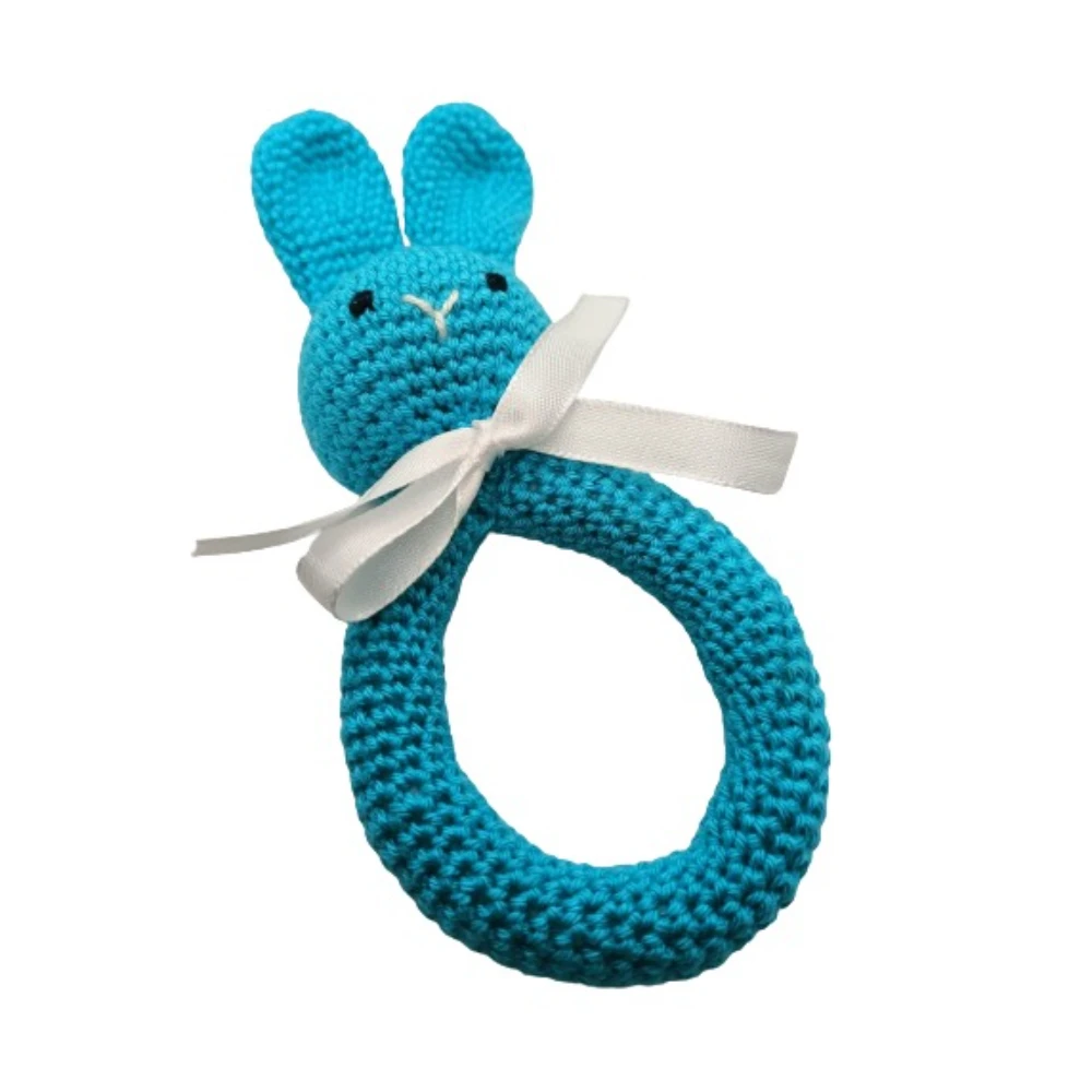 Pikkaboo - Handmade Crocheted Bunny Teether - Blue