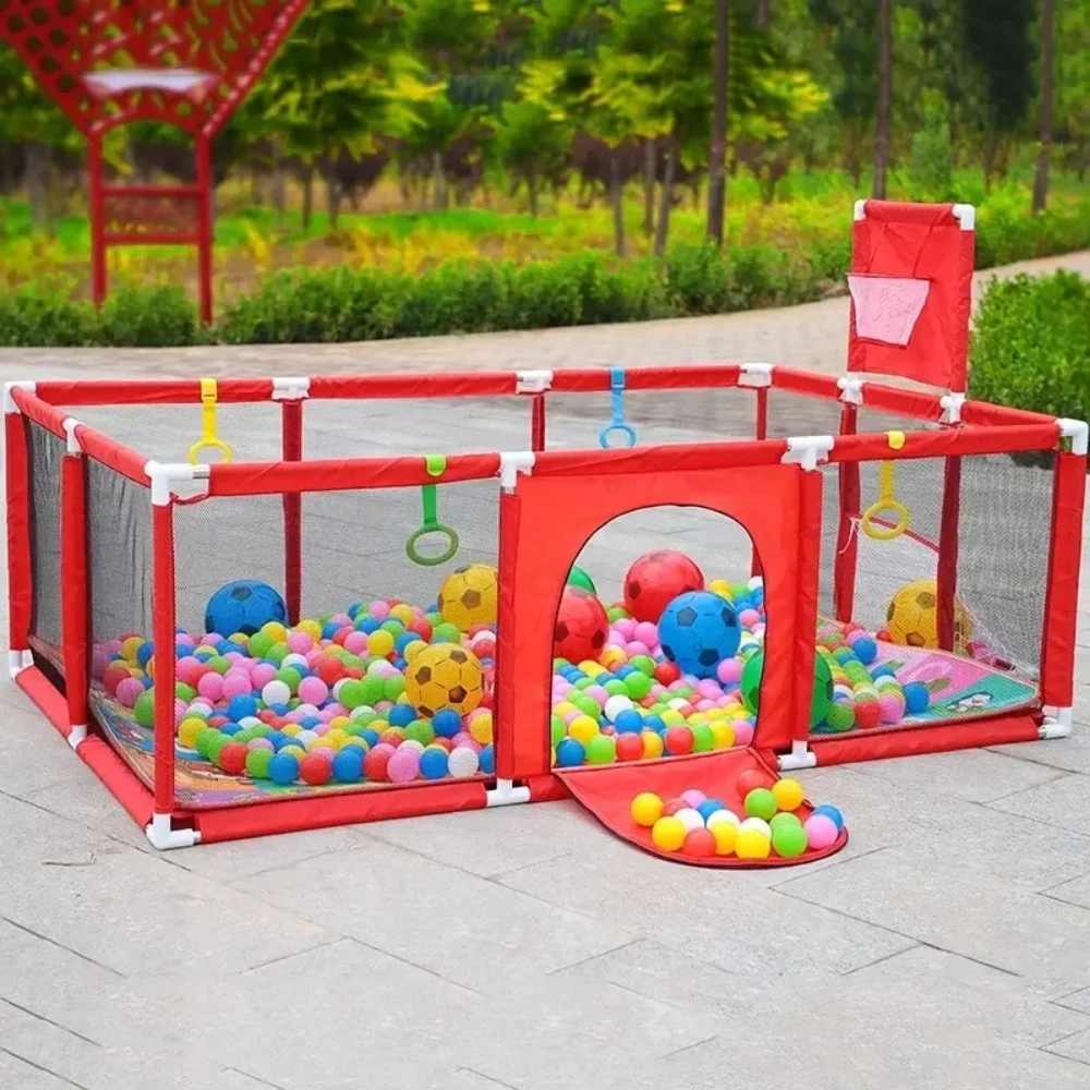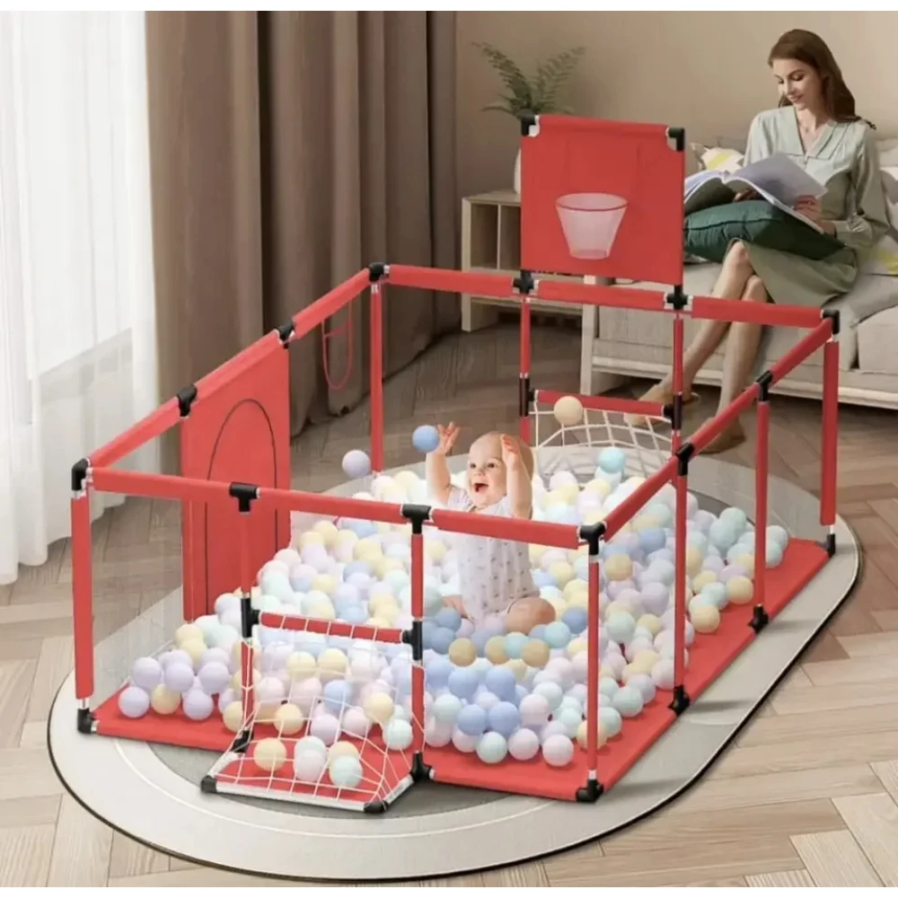 Pikkaboo Happy Game Fence Baby Playpen with Basketball Hoop & 30 Free balls - Red