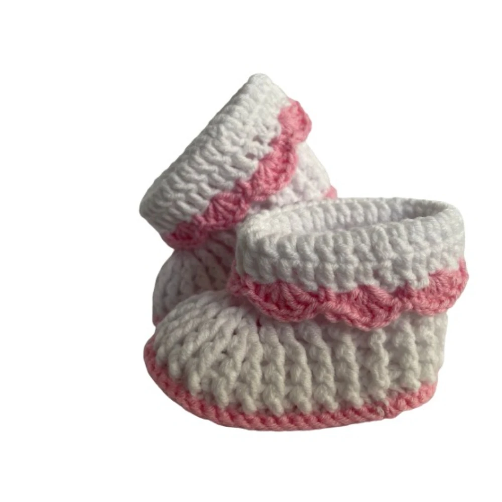 HeavenlyHugs Handmade Crochet Booties by Pikkaboo. Adorable, handmade booties perfect for little feet. Suitable for girls aged 3-5 years and 6-8 years. Soft, high-quality materials ensure a comfortable fit.