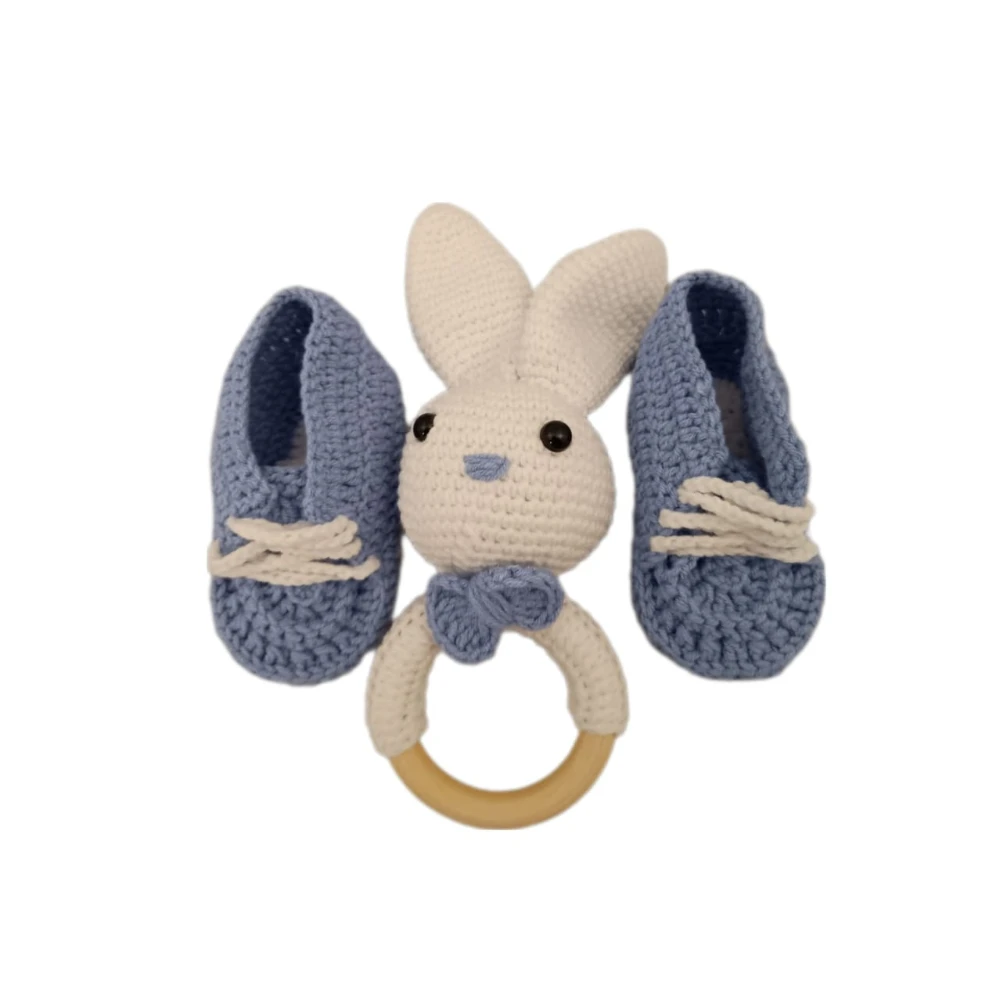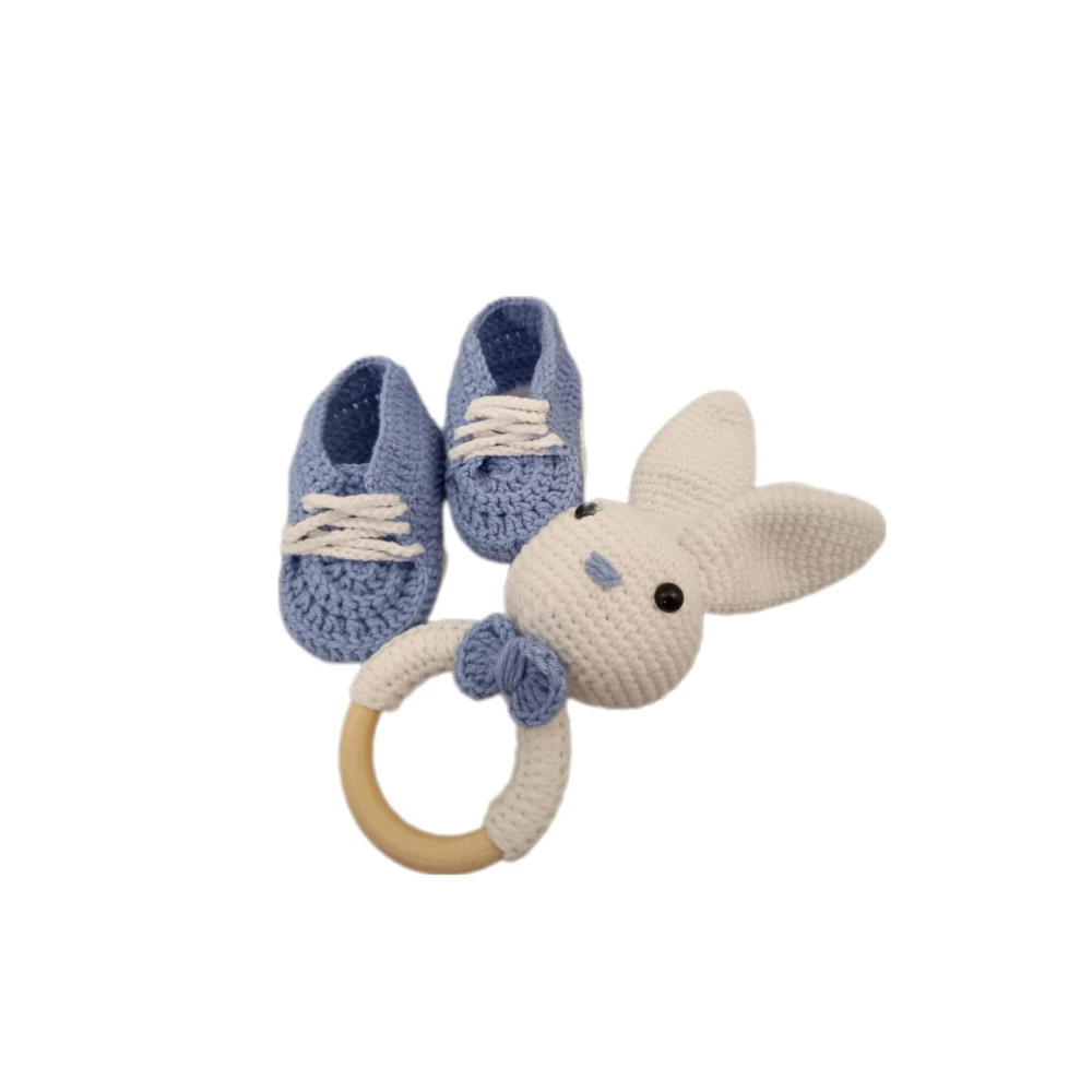 Pikkaboo-HeavenlyHugs Rabbit Handmade Crochet Teether and Booties - Blue - Baby Boy