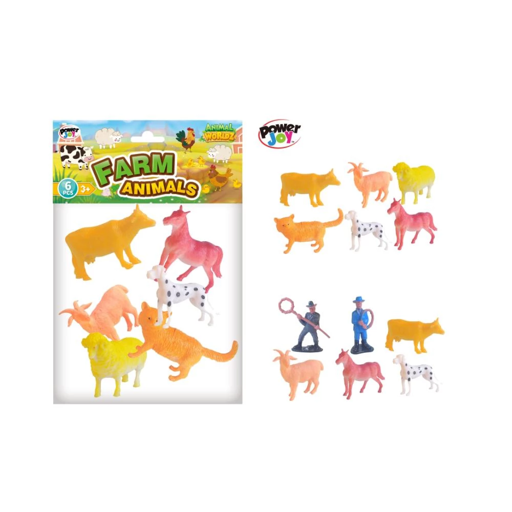 Power Joy Animal Worldz Farm Animal Figurines 4 Inches, 6 Pieces
