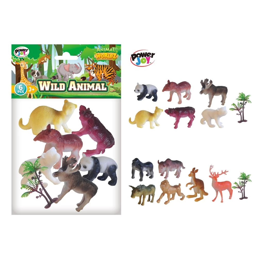 Power Joy Animal Worldz Safari Animal Figurines 4 Inches, 6 Pieces