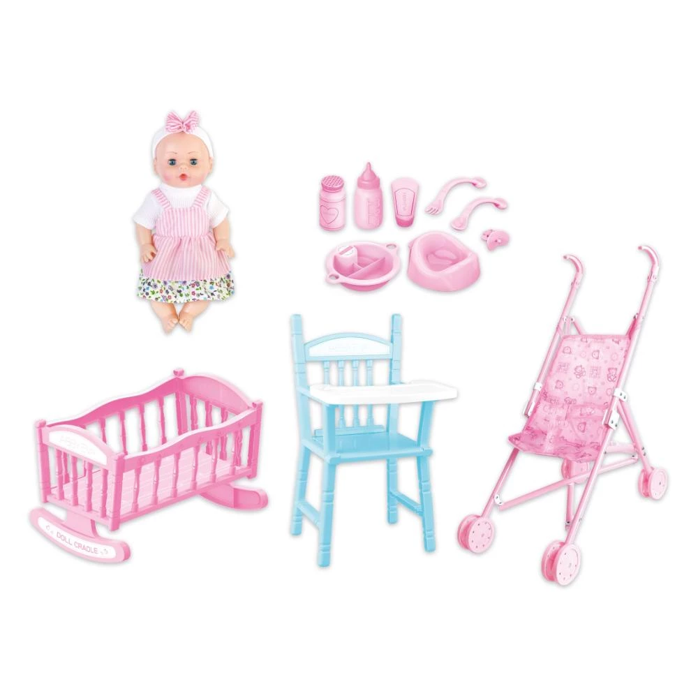 Press the doll to enjoy 4 realistic sounds, adding to the immersive playtime fun. The set is designed to offer a variety of play scenarios, from going for a walk with Baby Cayla to taking care of her with the included accessories. Please note that there are two assorted dolls available, and the one available will be shipped.