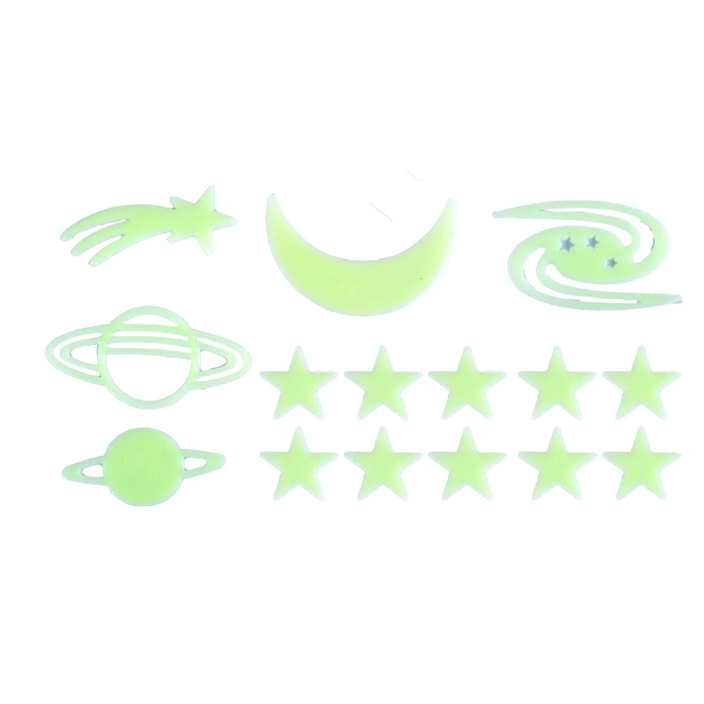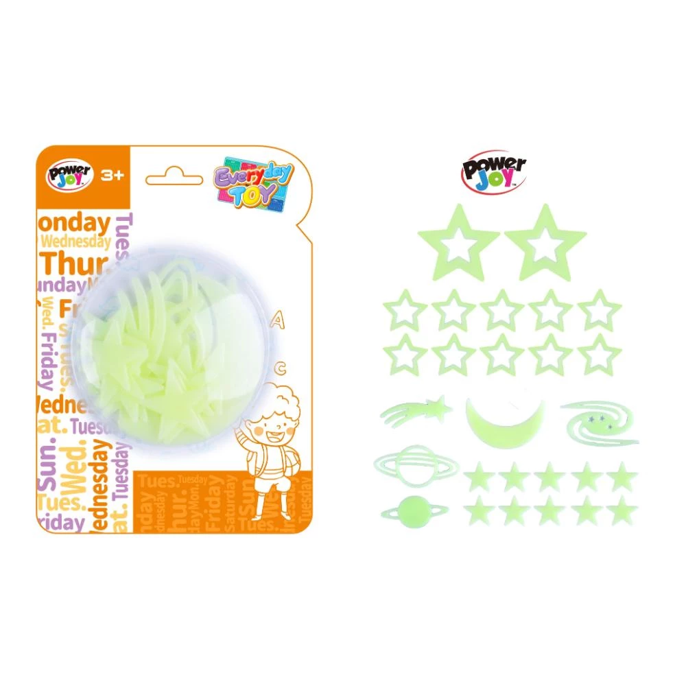 The Power Joy Everyday Toy Glow in the Dark set features assorted shapes of glowing stickers, including stars and planets, perfect for bringing any room to life. These glow-in-the-dark decals create a warm, calming atmosphere, helping children fall asleep quickly. Simply ensure the stickers absorb light for 15-30 minutes, and watch as they light up your room, transforming it into a glowing galaxy. Ideal for bedrooms or playrooms, these stickers provide a magical and realistic star-gazing experience, turning any dull space into a romantic, glowing universe.