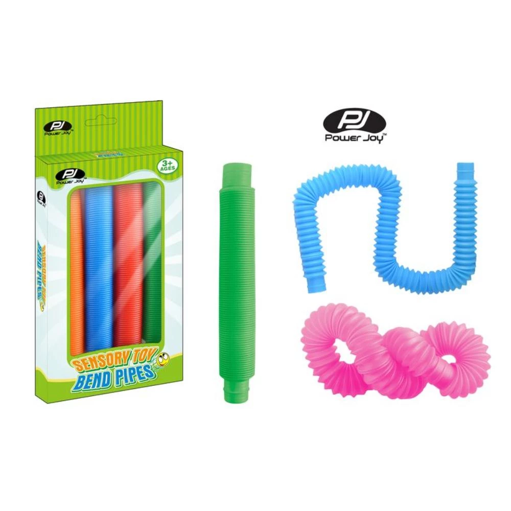 Power Joy Fidget Toy Bend Pipes - 4-Piece Stretchable Sensory Tube Set for Stress Relief