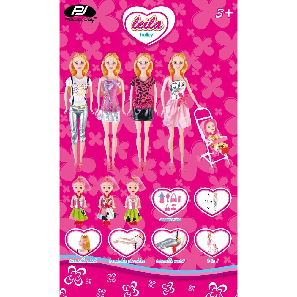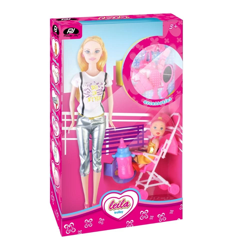 Power Joy fashion doll, Leila 3-in-1 set, 31cm articulated doll, fashion doll with baby doll, pretend play toys, trolley doll set, safe toys for girls