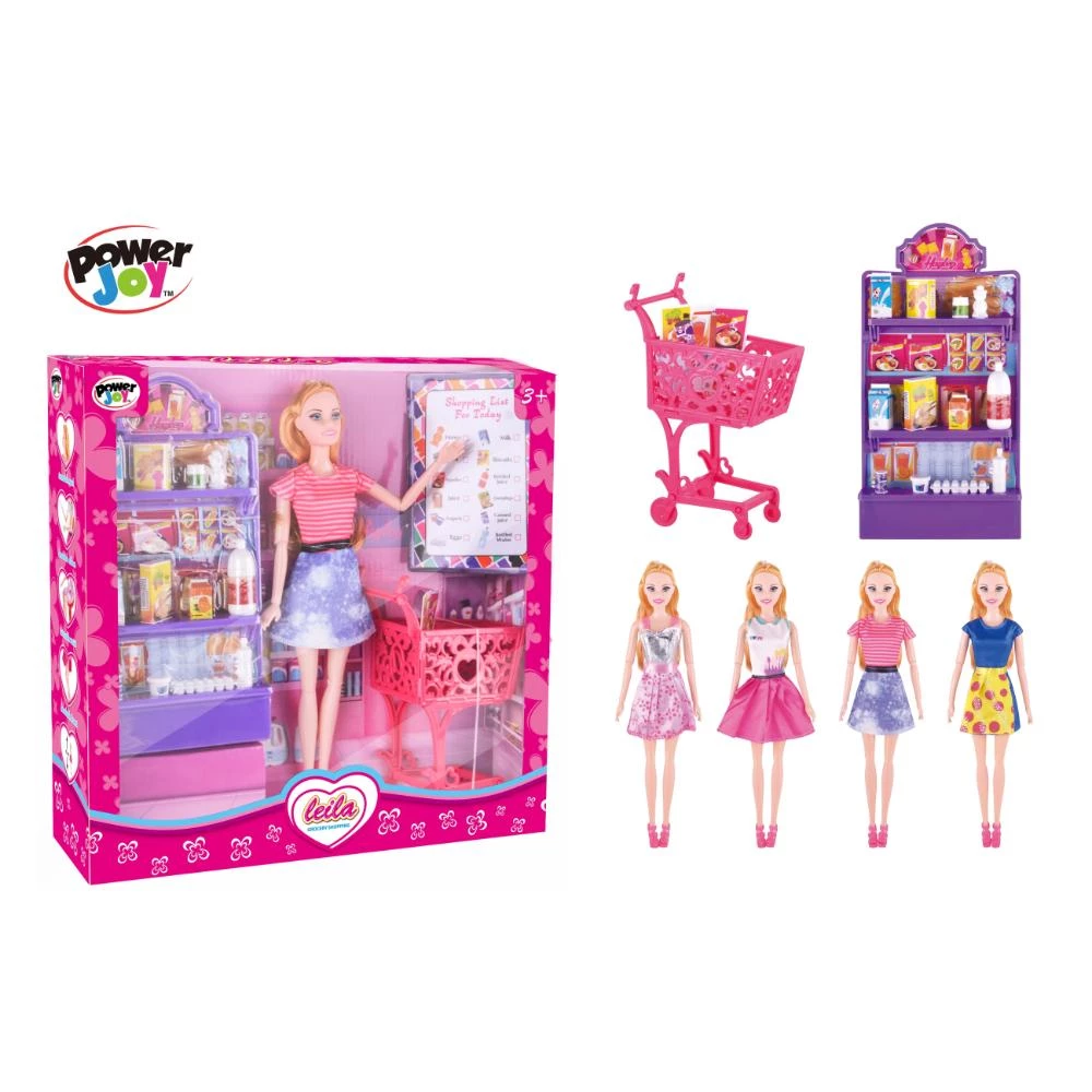 Power Joy fashion doll, Leila grocery shopping doll, 30CM fashion doll, mini shopping trolley toy, pretend play doll, articulated doll, dress-up doll, kids’ role-playing toys