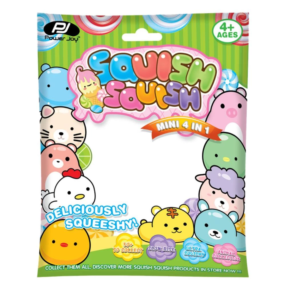 Introducing the Power Joy Squish Squish Animal Mini (4-in-1), a delightful set of soft, scented squishy toys that bring joy with every squeeze. These cute animals feature a realistic look and a sweet scented smell, making them irresistible to kids and collectors alike. Each squishy is ultra-soft and provides a soothing sensory experience, helping to relieve stress and bring happiness with each squeeze. Perfect for collections, gifts, or even as preschool props, these squishies also make excellent pressure relief toys and teaching aids. Whether for play, display, or stress relief, these squishies are a fun and engaging way to add joy to your day!