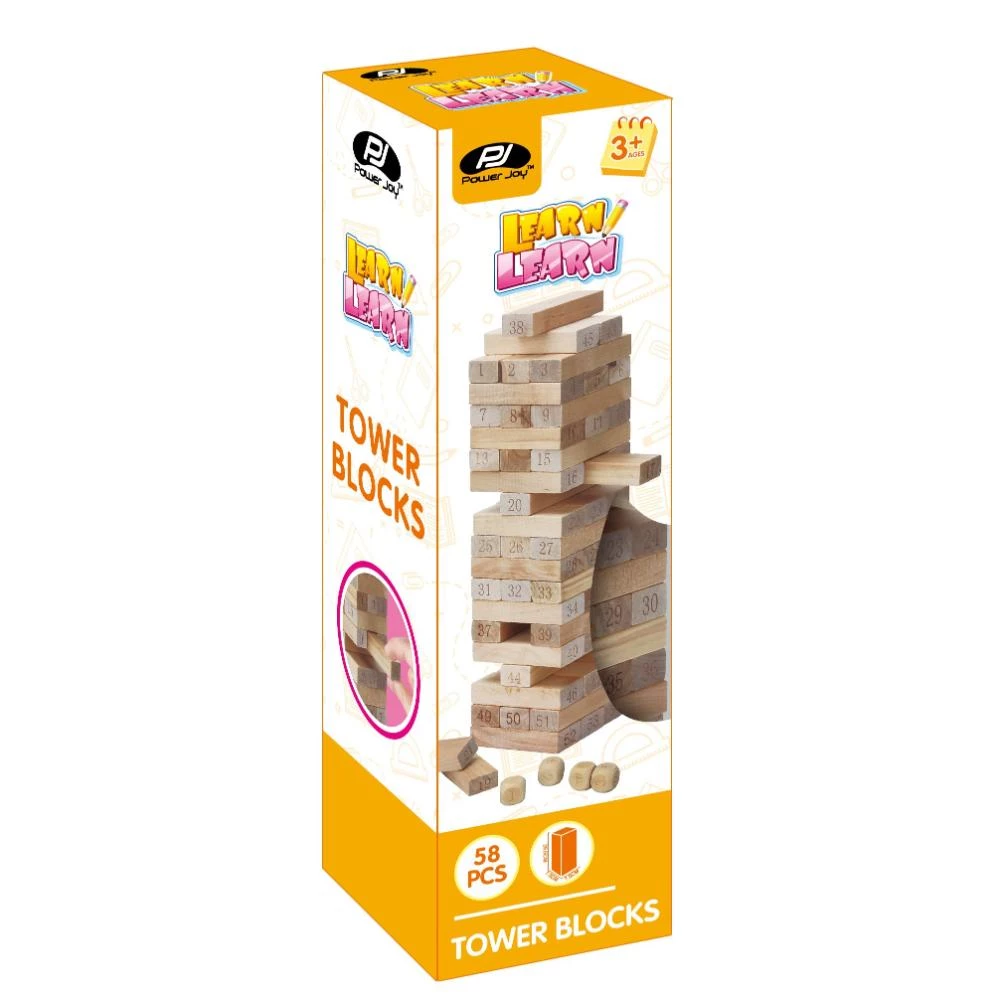 wooden tower blocks, stacking game for kids, family board games, Power Joy tower set, classic block game, fun educational toys, hand-eye coordination toys