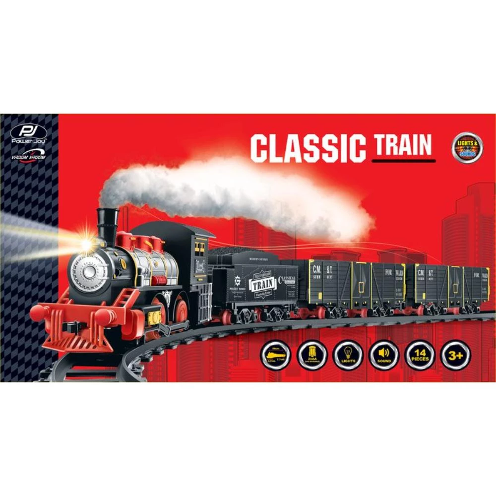 Power Joy Vroom Vroom Classic Train - Battery Operated with Lights, Music, and Smoke, 14 Pieces