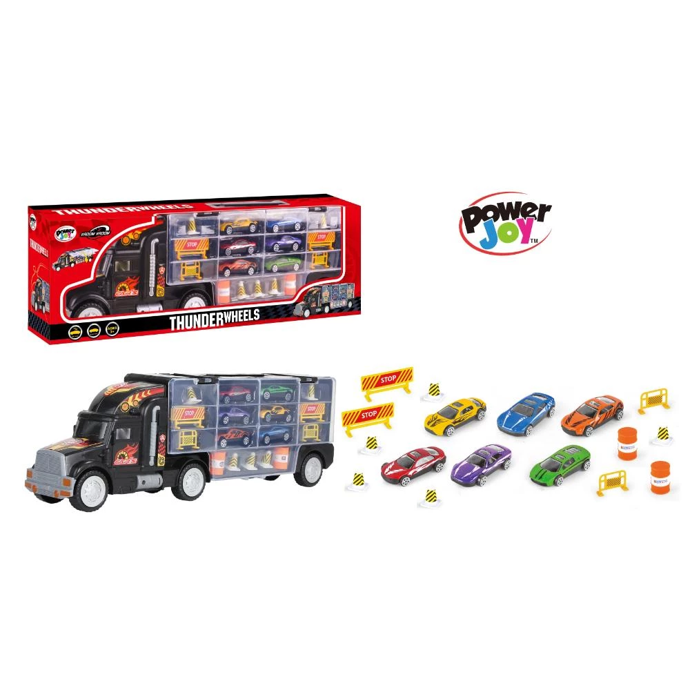 Die-cast cars, Thunder Wheels, Power Joy Vroom Vroom, storage lorry, alloy body cars, 3-inch cars, kids toy set, portable toy, non-toxic plastic