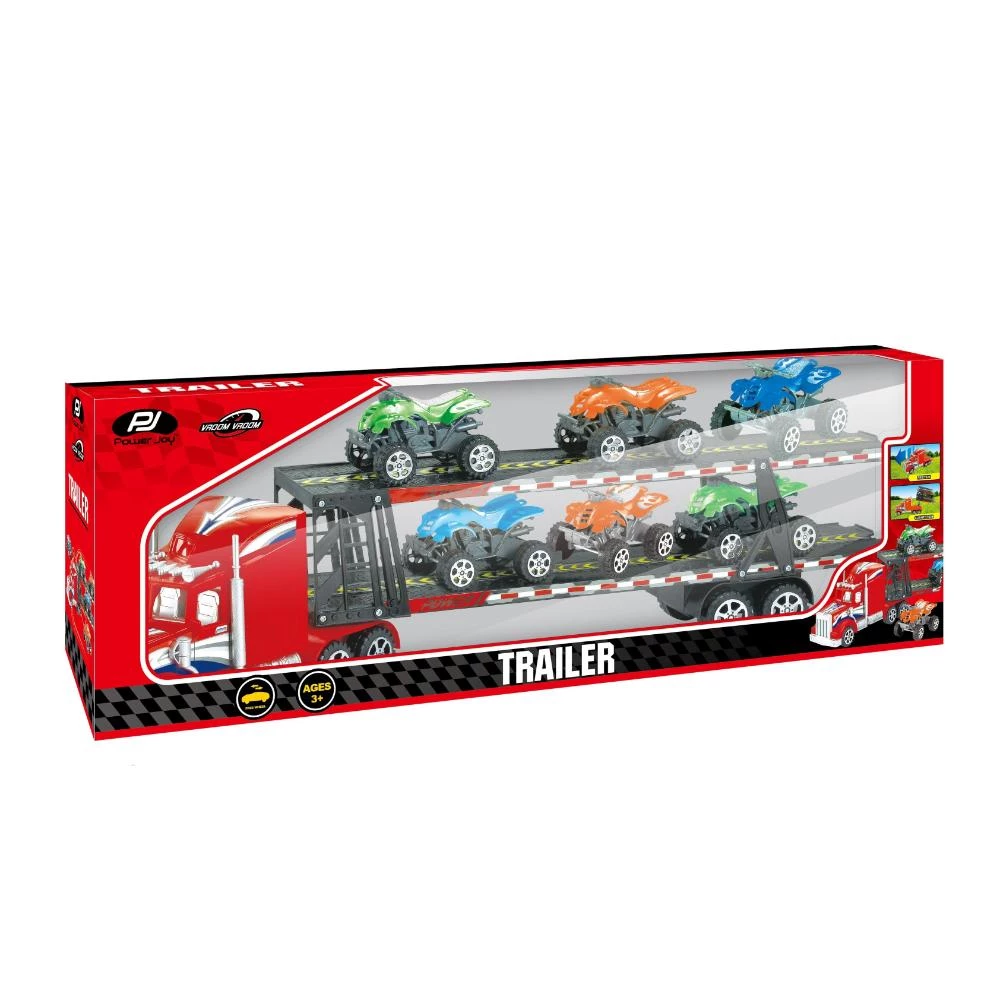 Power Joy Vroom Vroom Trailer 6 Pieces - Double-Sided Storage Friction Powered Trailer