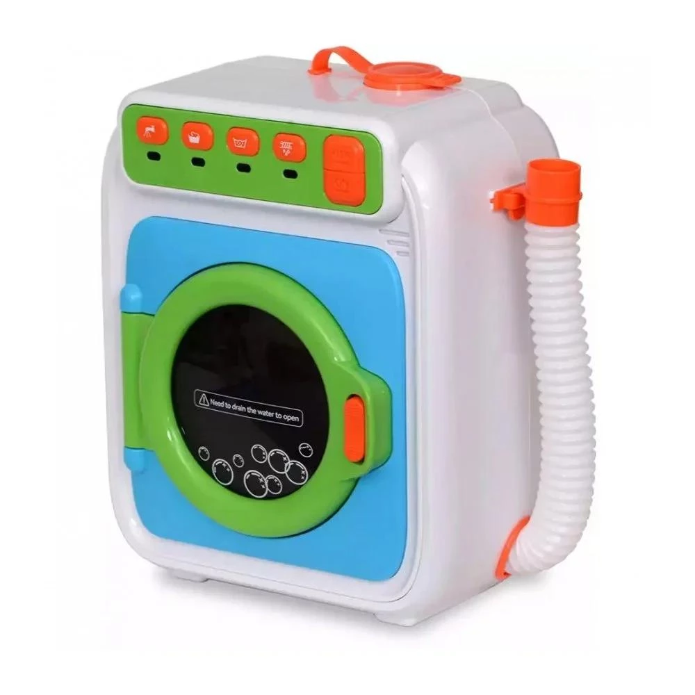 Bring pretend play to life with the Simulation Electric Light and Sound Washing Machine—a fun, interactive toy that mimics real-life laundry with flashing lights and realistic washing sounds. Perfect for imaginative role-play, this compact and lightweight appliance toy lets kids pretend to wash clothes, small items, or even their plush toys, helping them develop creativity, fine motor skills, and hand-eye coordination. With a design made for little hands, it encourages interactive exploration as children engage in everyday household scenarios. Built from durable materials and powered by batteries (not included), this toy washing machine adds excitement and realism to every playtime.