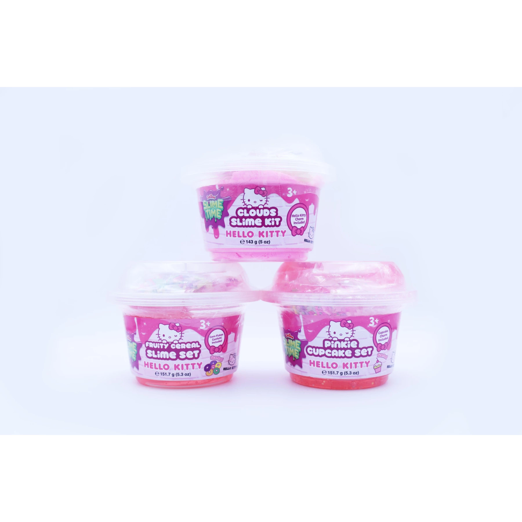 Experience the ultimate slime fun with the Hello Kitty SlimeTime Pinkie Set! This adorable set includes three scented slime varieties—Cupcake, Fruity Cereal, and Clouds—each offering a soft, stretchy, and squishy texture. Perfect for Hello Kitty fans and slime lovers, it provides endless creative and sensory play while also serving as a stress relief toy. The reusable slime stays fresh inside its convenient storage can, ensuring mess-free fun every time. Whether for playtime, party favors, or a cute gift, this Hello Kitty slime set is a must-have!